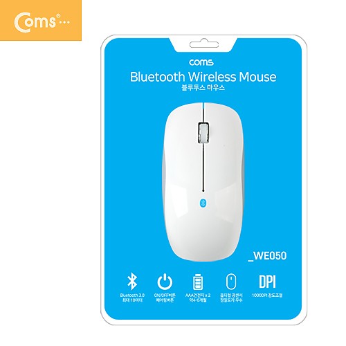 Coms 블루투스 마우스 BM-700 1000 DPI, 화이트, Bluetooth, Mouse