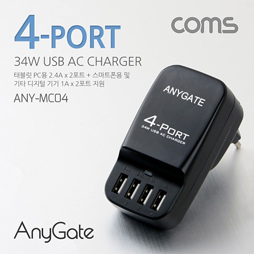Anygate 멀티 충전기 4포트 / 34W / 여행용 충전기, 전원 스마트폰 태블릿