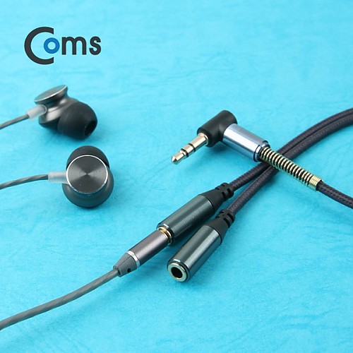 Coms AUX 케이블(3극) Y형 2분배/30cm, Black, 스테레오, Stereo, 젠더, 이어폰 분배