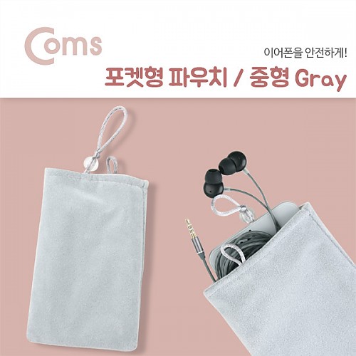 Coms 포켓형 파우치, 중형/Gray, 108mm x 170mm, 수납, 보관 미니 파우치(이어폰, 메모리카드, 열쇠, 동전 등)