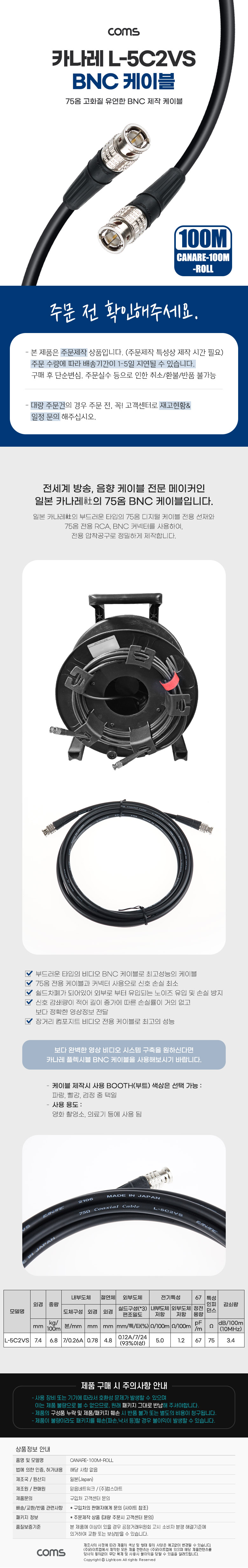 [CANARE-100M-ROLL] Coms 카나레 L-5C2VS BNC 제작용 케이블 100m 케이블릴