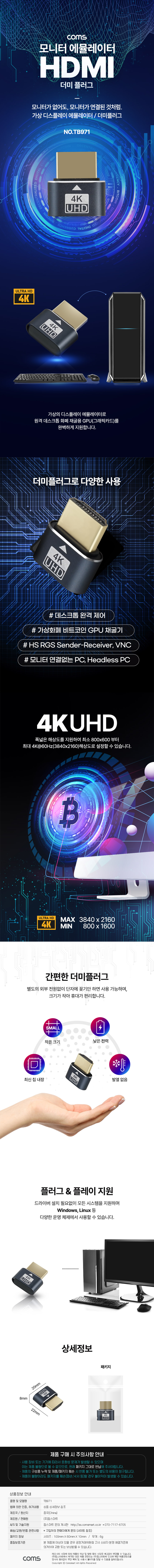 [TB971] Coms HDMI 더미 플러그 가상 모니터 디스플레이 에뮬레이터