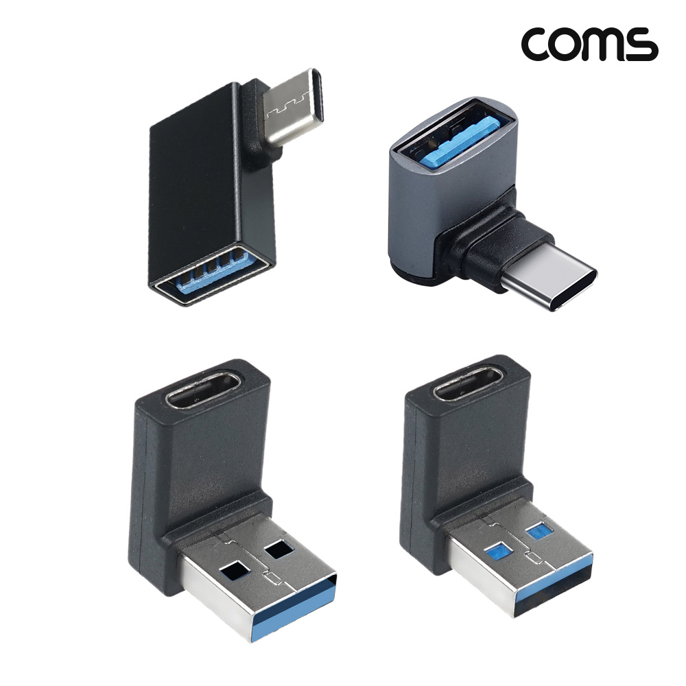 Coms A to C 타입 10Gbps 5Gbps 고속전송 꺾임 변환젠더 하향 3개 우향 1개 4개입 > A to C타입 젠더