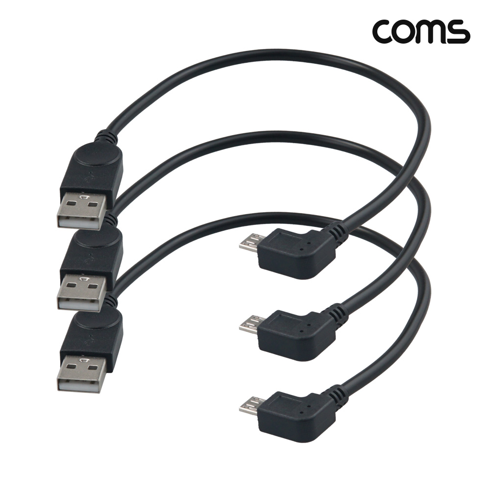 Coms USB 2.0 A to Micro 5Pin 좌향 꺽임 변환케이블 30cm 마이크로 5핀 3개입 > 젠더