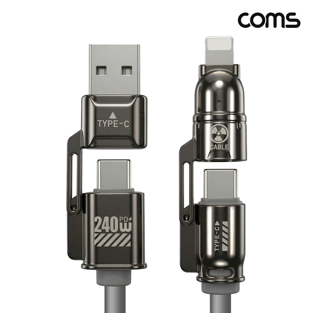 Coms 4 in 1 꼬리물기 멀티 케이블 C타입 PD 240W 고속충전 iOS 8핀 USB > 멀티케이블
