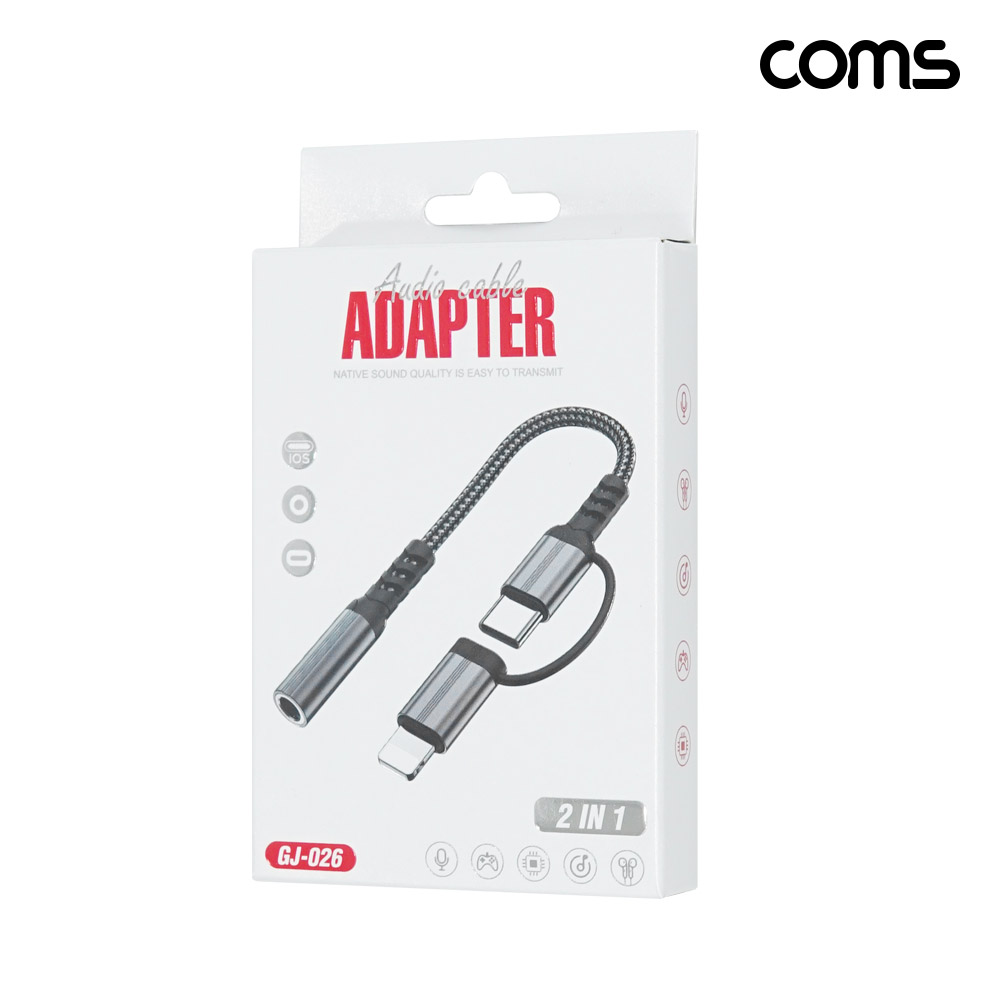 • Coms C타입 iOS 8핀 오디오 젠더 3.5mm 스테레오 이어폰 AUX 10cm 꼬리물기 (1762316888)