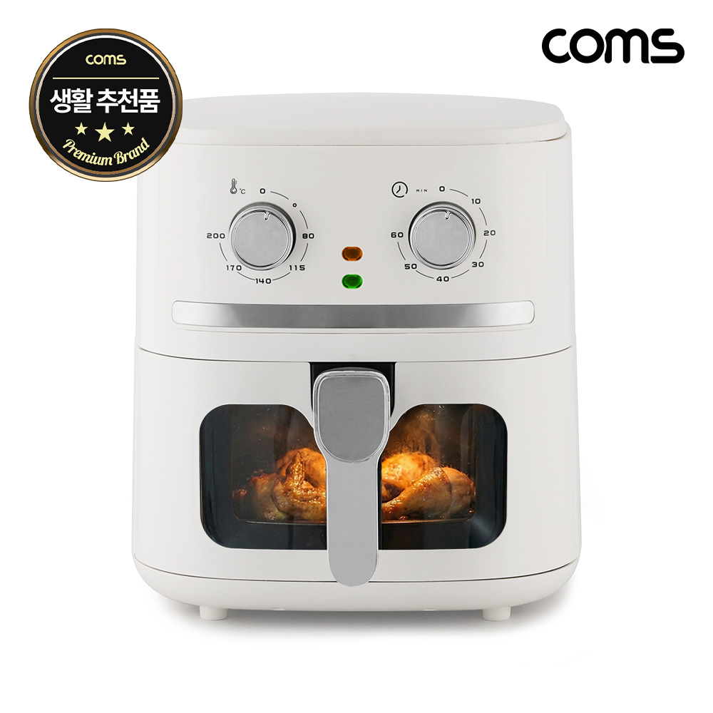 Coms 6.5L 에어프라이어 White 투명 창 사각 바스켓 빵 군고구마 생선구이 다양한 요리에 최적화 > 주방가전