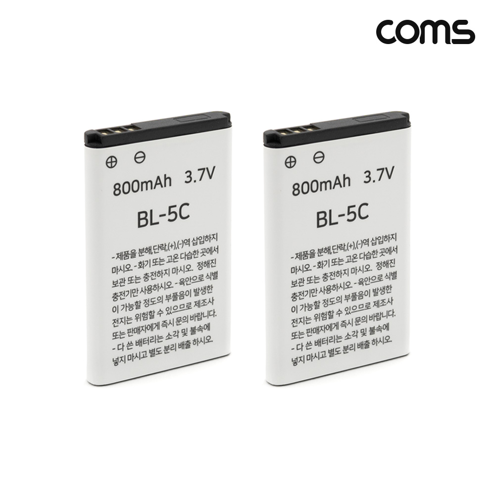 Coms BL-5C 충전지 3.7V 800mAh 리튬이온 배터리 2개입 > 건전지/충전기
