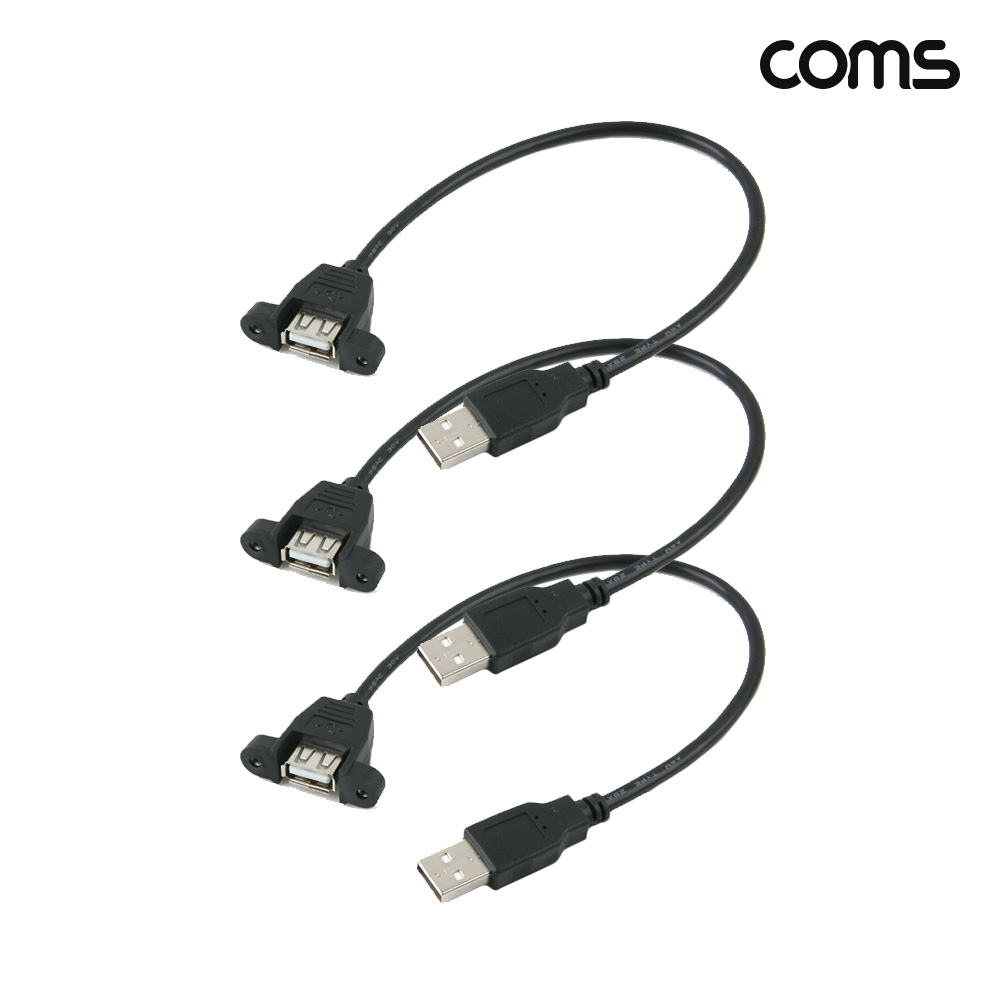 Coms 패널마운트형 USB 연장 케이블 30cm USB 2.0 A 포트 브라켓 연결용 A타입 3개입 > USB케이블