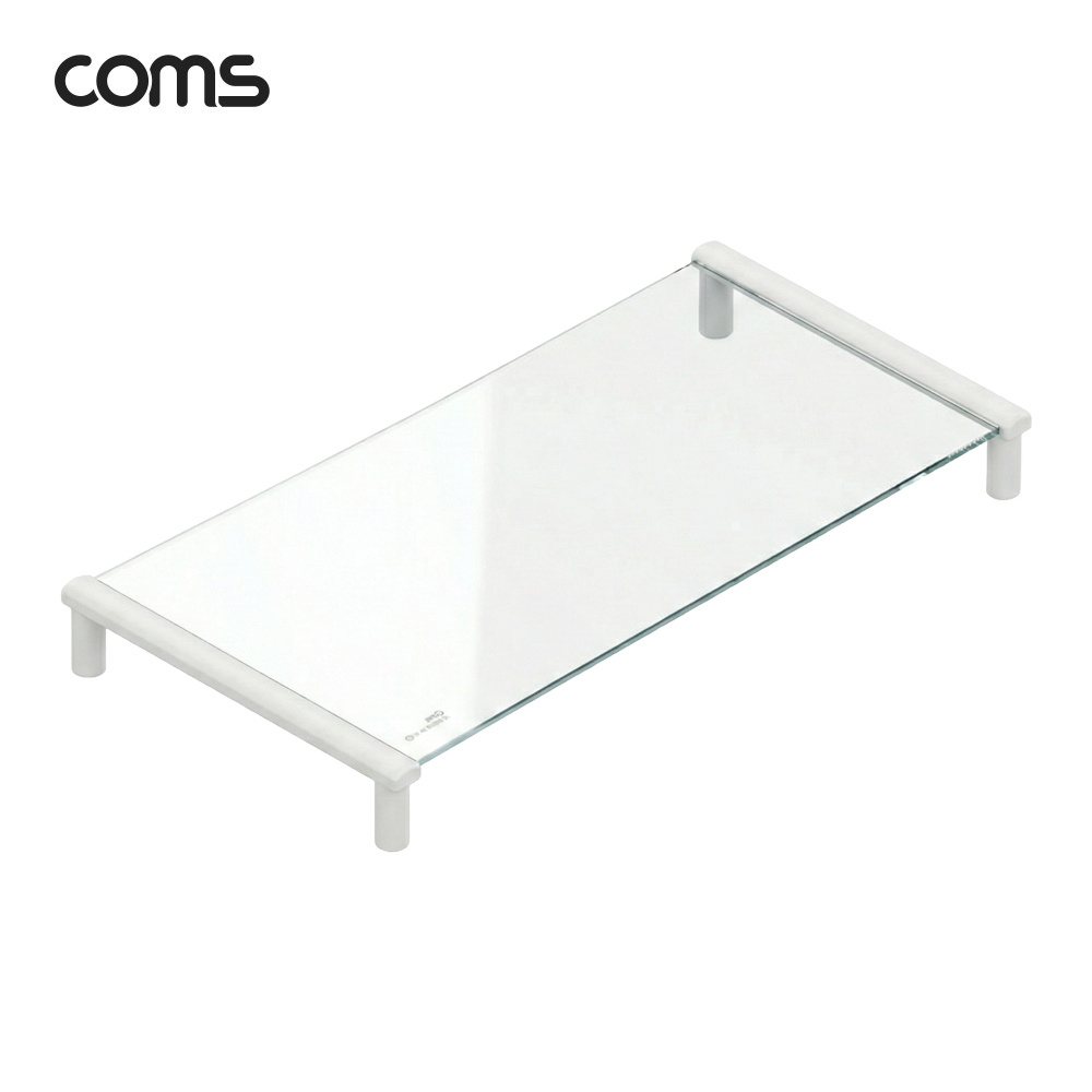 • Coms 모니터 받침대/스탠드, 화이트프레임 투명유리 일반형 1단 (520mm x 309mm) (1597994281)