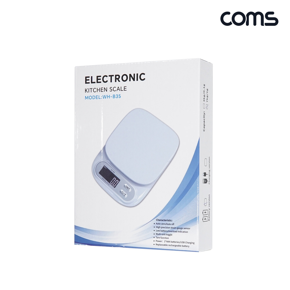 • Coms 디지털 주방 저울 1g 단위 측정 영점기능 White (1765262319)