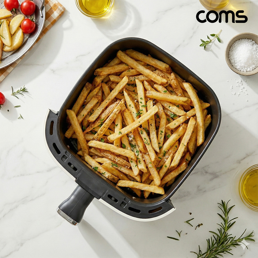 • Coms 6.5L 에어프라이어 White 투명 창 사각 바스켓 빵 군고구마 생선구이 다양한 요리에 최적화 (1766041683)