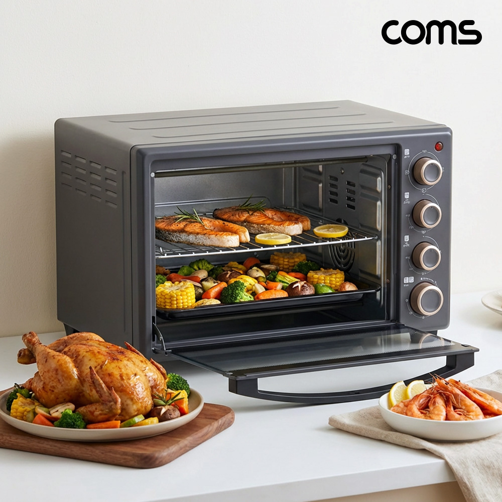 • Coms 30L 오븐형 에어프라이어 2단 상하 열풍 더블히팅 빵 피자 고구마 생선 고기 구이 다양한 요리에 최적화 (1767832235)