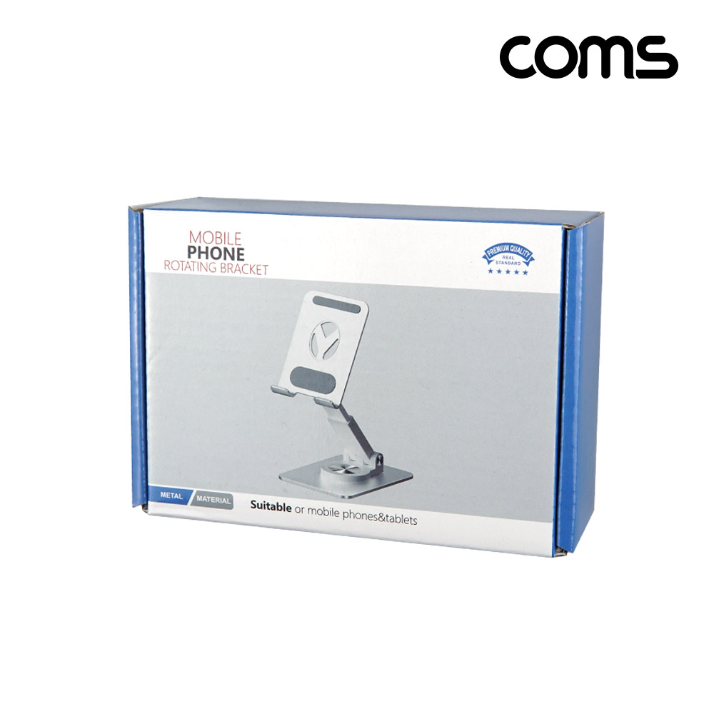• Coms 스마트폰 태블릿 스탠드 거치대 상하좌우 360도 회전 높이조절 최대 90mm 폴딩접이식 (1773649157)